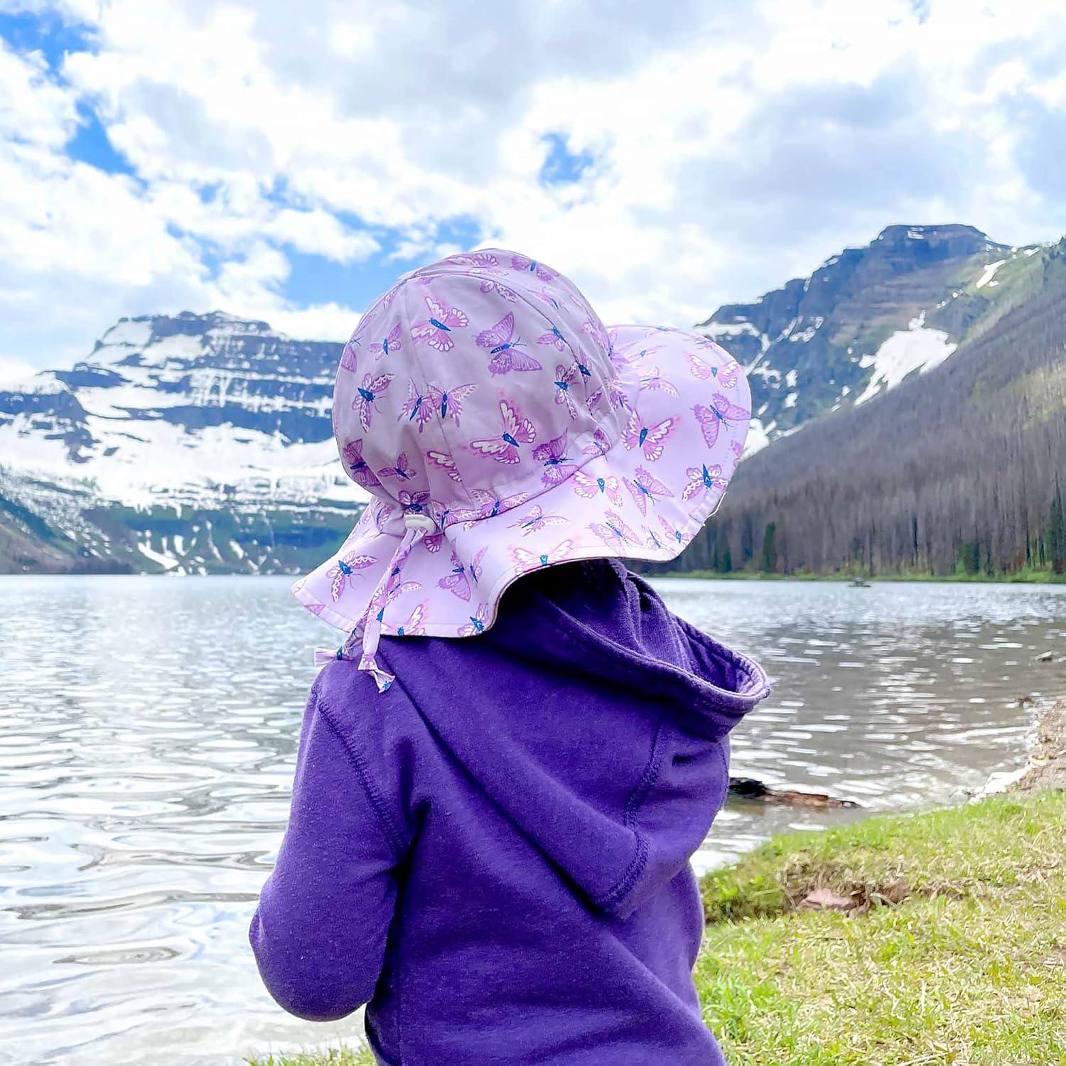 JAN & JUL 50+ UPF Cotton Sun Hat with Wide Brim for Toddler Girls(Butterfly)